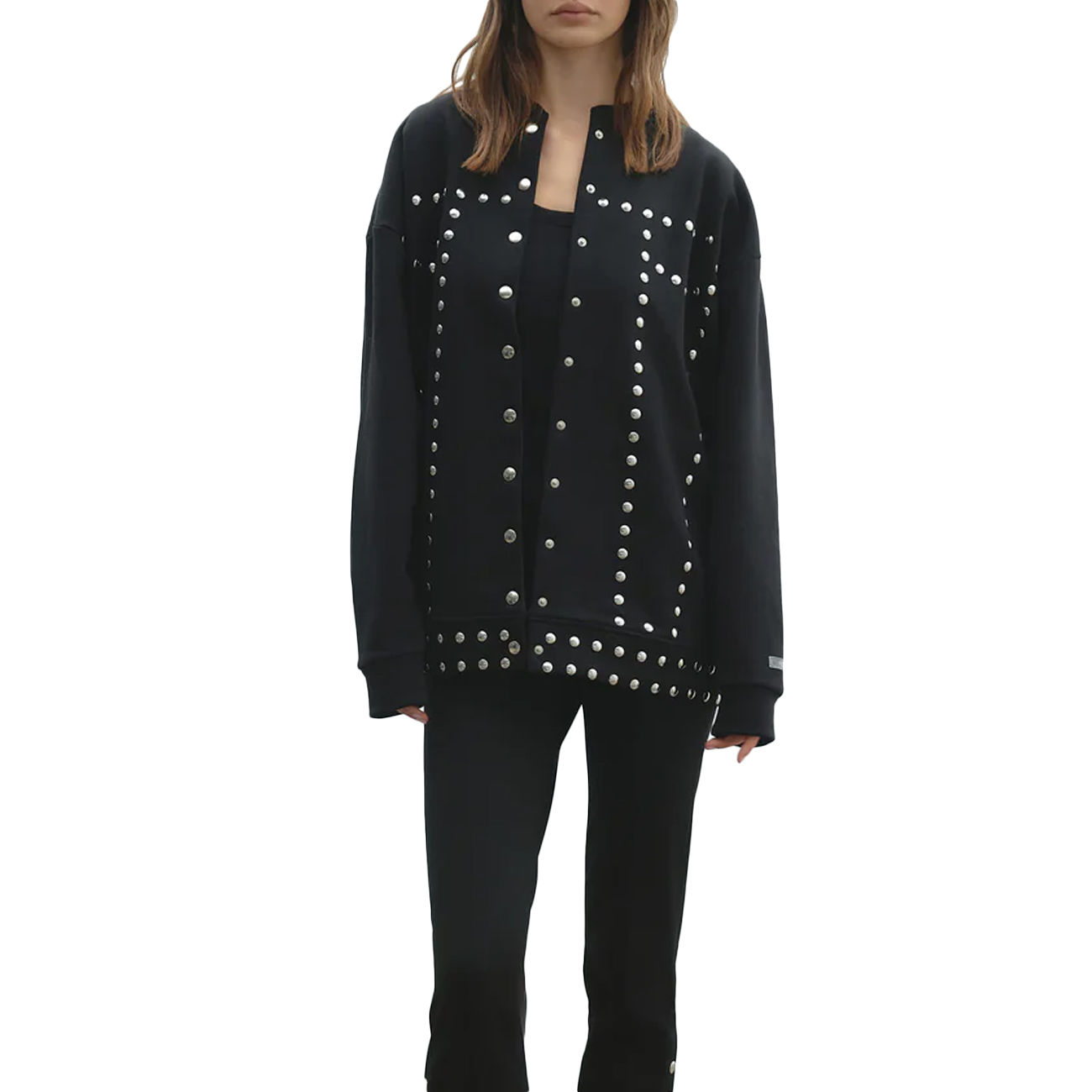 Il bomber di Akep in felpa unisce comfort e carattere in un capo dal taglio relaxed, pensato per chi ama uno stile casual ma distintivo. Le borchie metalliche ne impreziosiscono la superficie, conferendo un sofisticato tocco rock e contemporaneo. La chiusura con bottoni e i polsi a costine assicurano una vestibilità curata e confortevole. La linea morbida e il design ricercato lo rendono perfetto da indossare sopra look quotidiani o outfit più audaci. Un equilibrio raffinato tra praticità e personalità, ideale per completare il guardaroba urbano.