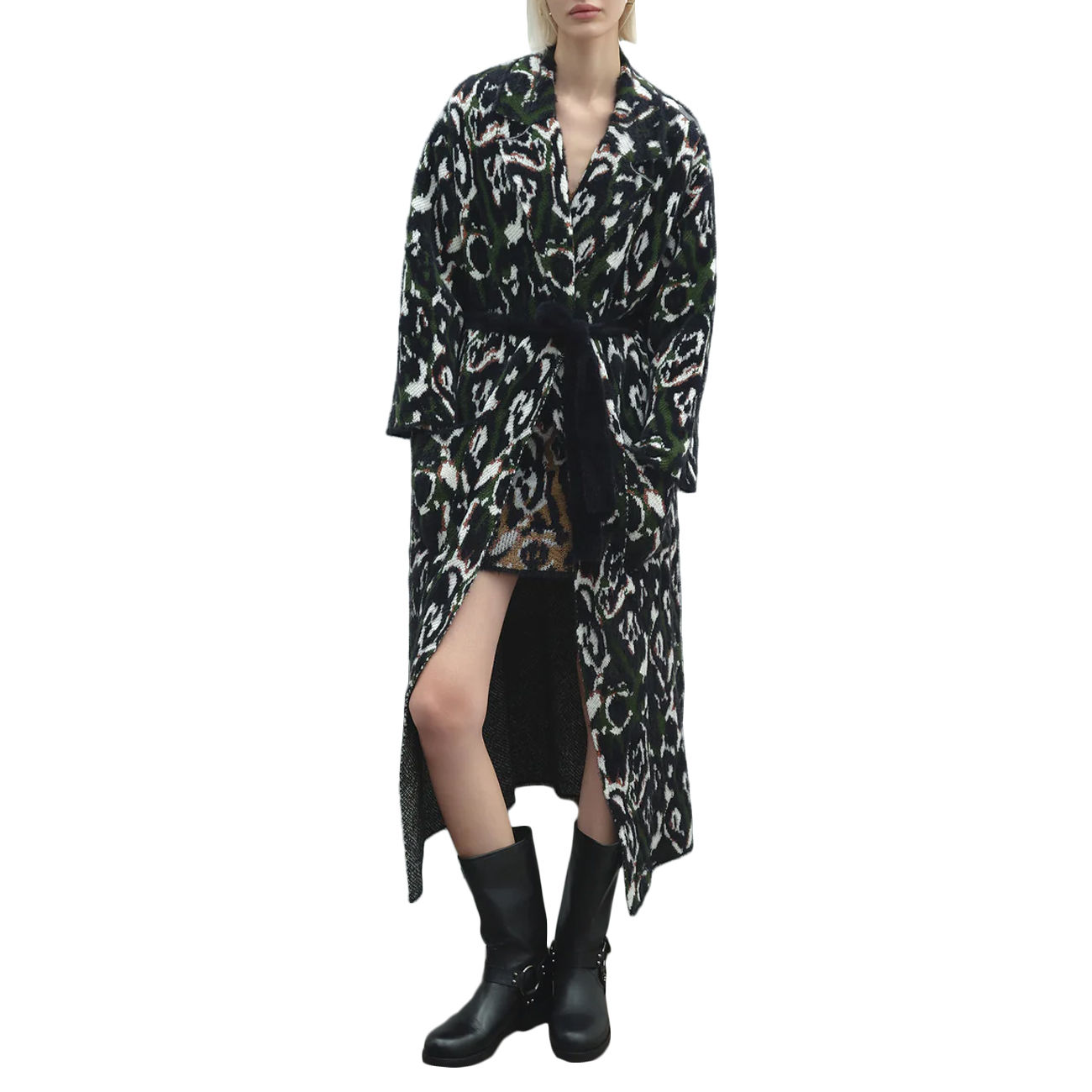 Il cappotto in jacquard maculato di Akep unisce audacia e raffinatezza in un equilibrio contemporaneo. Il maxi colletto avvolge con eleganza, conferendo carattere e presenza al capo. La cintura in vita definisce la silhouette, valorizzando la figura con naturale armonia. Il design combina comfort e stile, rendendo il cappotto perfetto per affrontare la stagione con sicurezza. Un capo che interpreta la femminilità moderna con dettagli distintivi e ricercati.