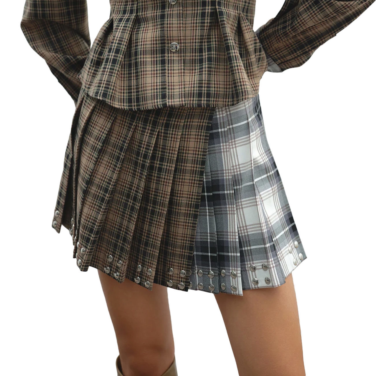 MINIGONNA A PIEGHE CHECK E BORCHIE