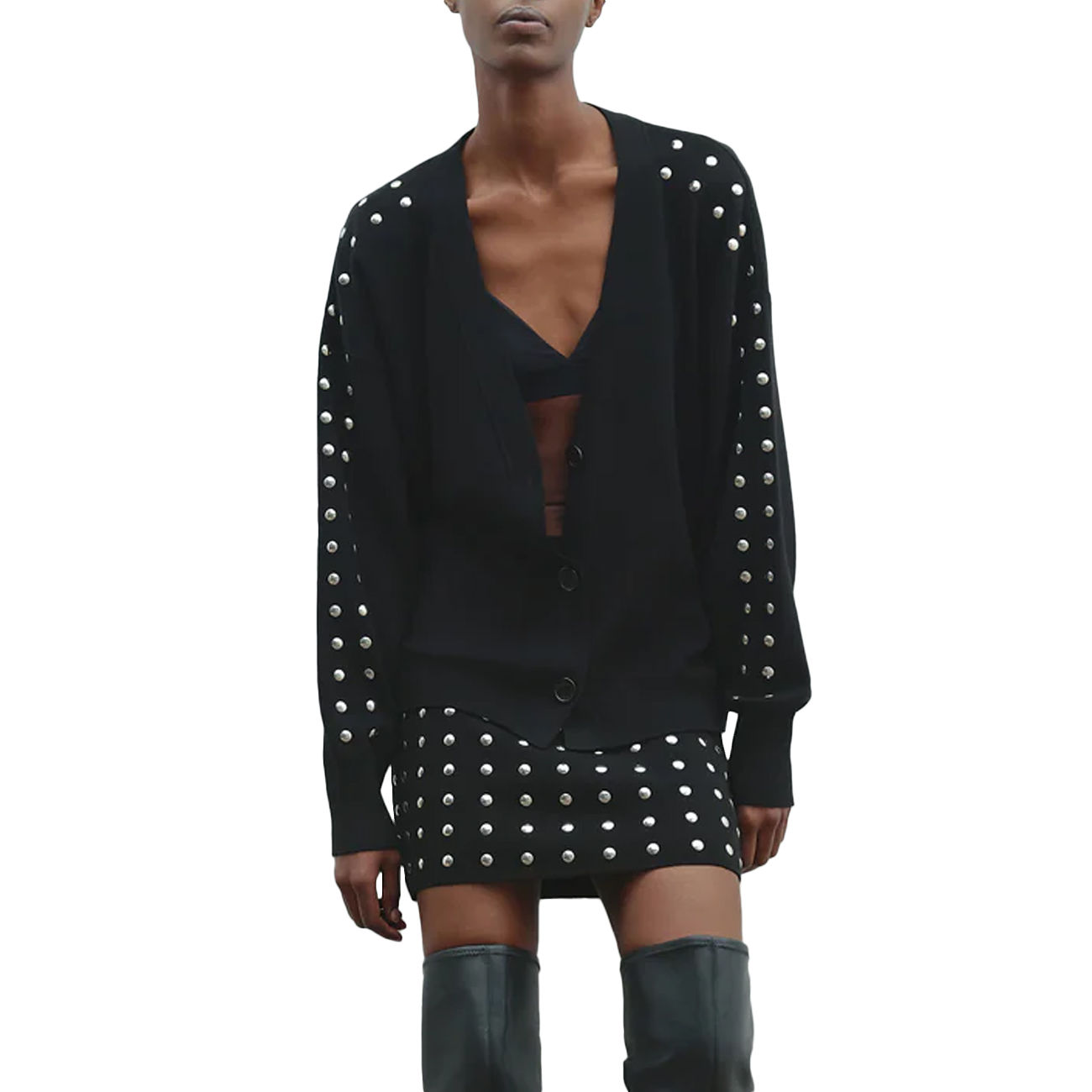 La minigonna in maglia strutturata di Akep unisce design contemporaneo e carattere deciso in un capo dal taglio corto e lineare. Le borchie metalliche applicate frontalmente aggiungono un dettaglio grintoso, trasformando la semplicità in un elemento di stile distintivo. La chiusura laterale con zip nascosta garantisce praticità senza compromettere l’eleganza della linea. La vestibilità regolare valorizza la silhouette con naturalezza, offrendo comfort e libertà di movimento. Perfetta per look urbani o serali, si presta a combinazioni versatili e sofisticate.