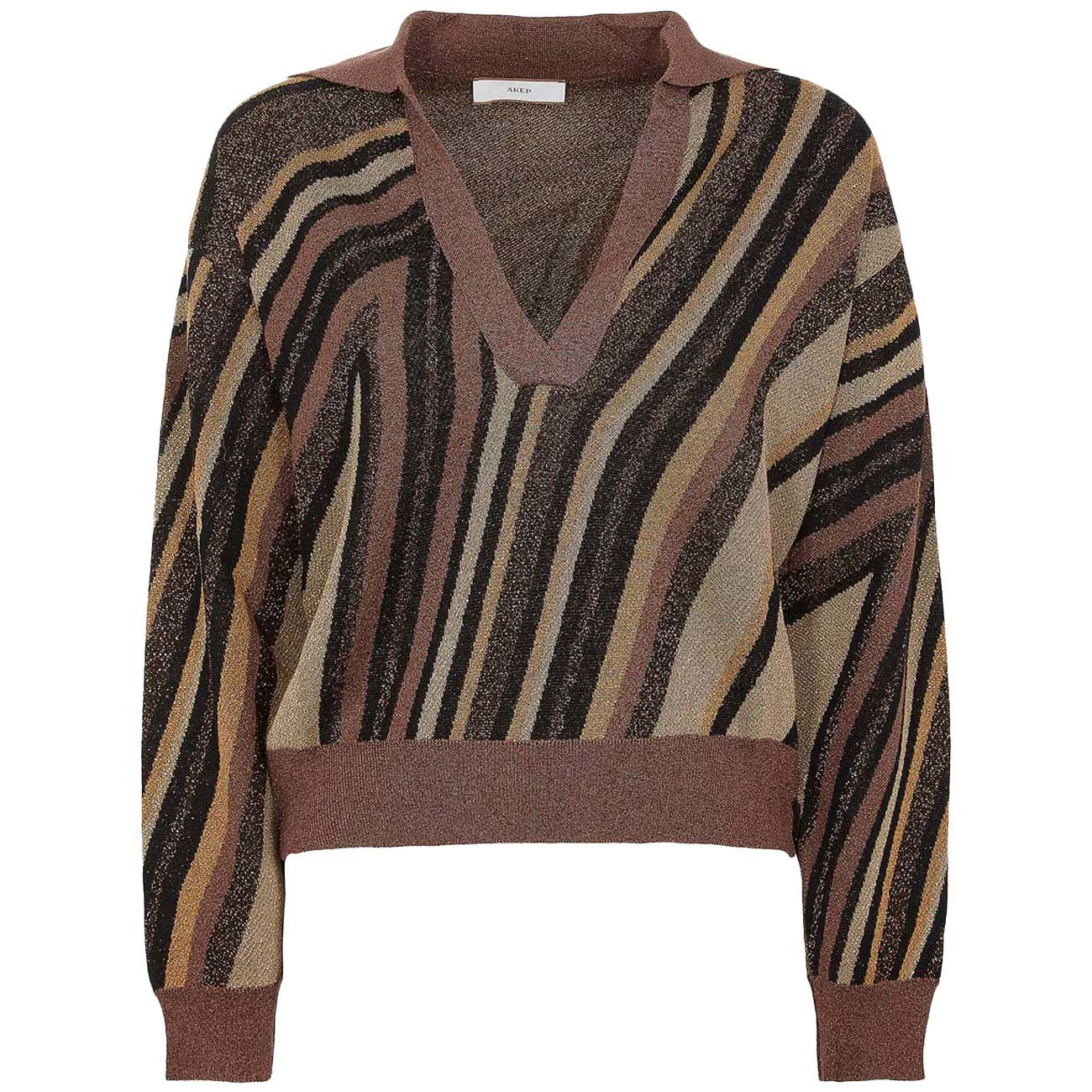 La polo femminile di Akep reinterpreta lo spirito sportivo con un’eleganza luminosa e contemporanea. La riga diagonale a contrasto, impreziosita da filati in lurex, regala un effetto raffinato e brillante, perfetto per chi ama distinguersi con stile. Il colletto classico e lo scollo a V esaltano la femminilità con un equilibrio armonioso tra dinamismo e raffinatezza. Versatile e confortevole, si abbina con naturalezza a pantaloni sartoriali, jeans o gonne midi. Un capo ideale per look casual-chic dal fascino disinvolto. Con Akep, ogni giorno diventa un’occasione per brillare con eleganza.