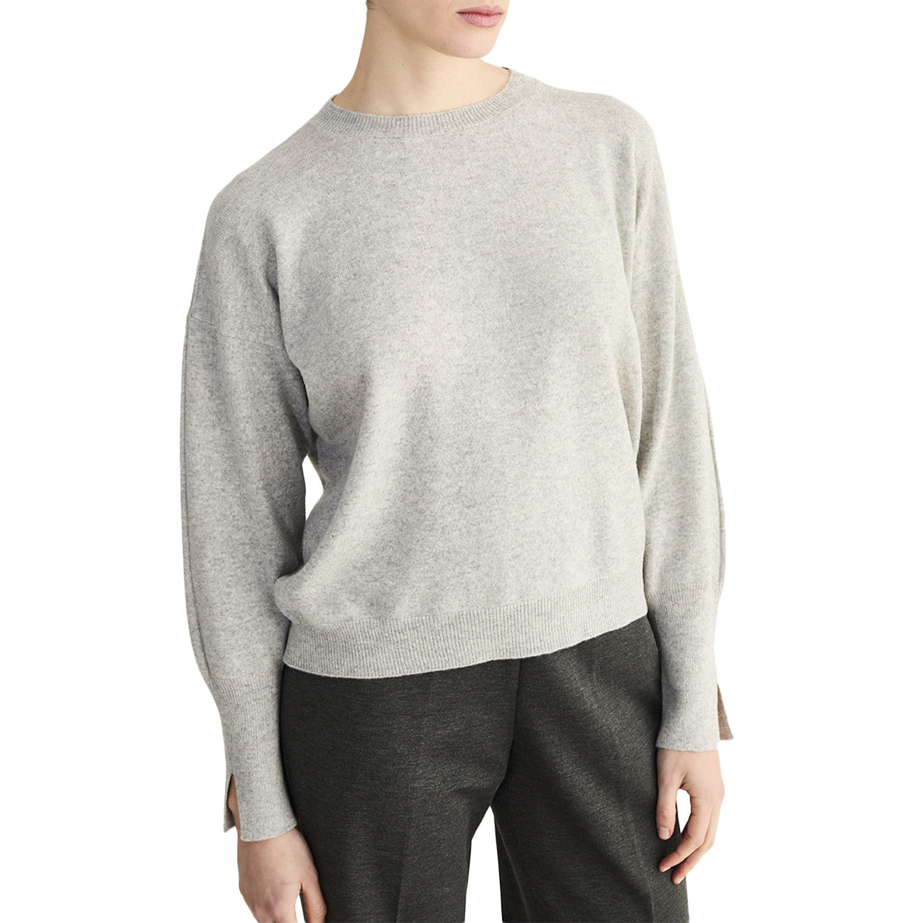 Espressione di un’eleganza essenziale, il girocollo Anneclaire combina la morbidezza del filato pregiato a un’estetica moderna e sofisticata. La vestibilità boxy e rilassata si fonde con il polso lungo e lo spacchetto laterale, dettagli che donano un tocco di raffinata contemporaneità. Il design minimal a tinta unita grigio mélange ne esalta la versatilità, rendendolo ideale per look sovrapposti e ricercati. Un capo di maglieria iconico e confortevole, perfetto per interpretare con naturalezza lo stile più raffinato.