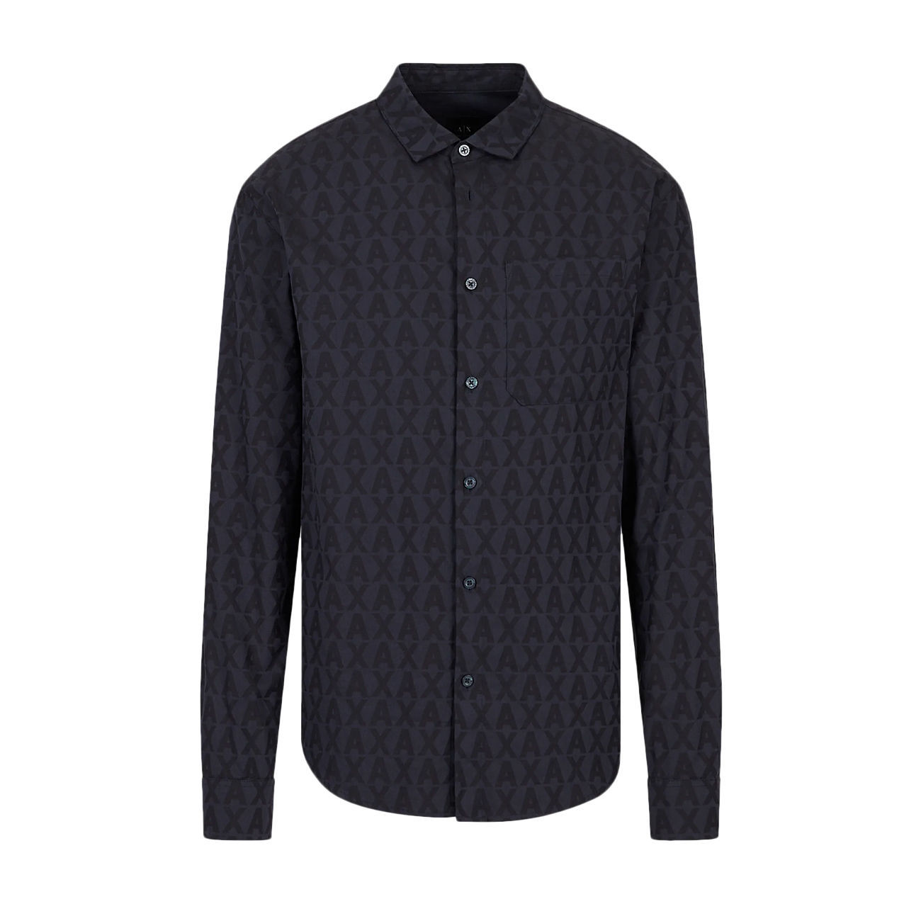 Camicia in puro cotone con taschino, caratterizzata da una sofisticata lavorazione jacquard dove il logo A|X risalta direttamente dalla superficie del tessuto.