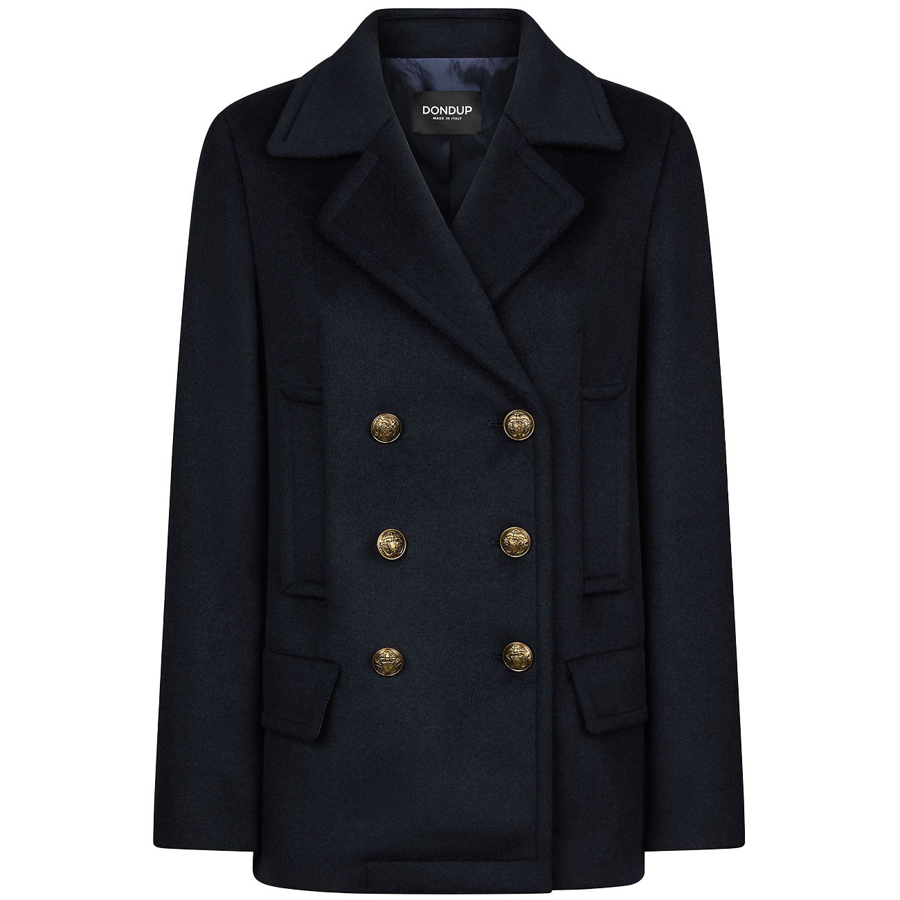 Celebra lo spirito navy con il cappotto doppiopetto di Dondup, un'icona di stile che omaggia la tradizione sartoriale. Realizzato in un sontuoso panno, si distingue per la silhouette boxy e la lunghezza corta che bilancia con attitude le proporzioni. Il profondo blu notte è illuminato da sei maxi bottoni dorati, finemente lavorati, che infondono un lusso di ispirazione militare. I revers ampi e affilati aggiungono un tocco di teatralità, rendendolo il capospalla perfetto per elevare ogni outfit, dal casual allo chic. Un pezzo imprescindibile, emblema di un'eleganza audace e senza tempo.