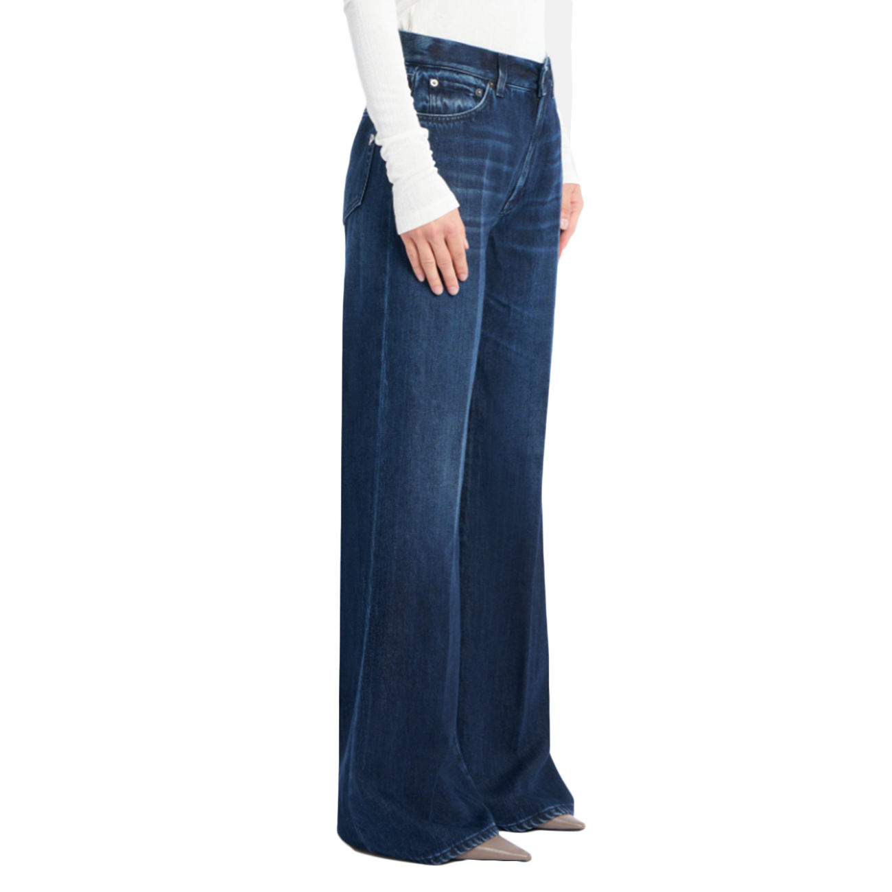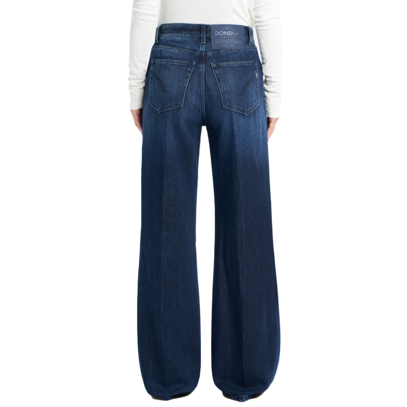 I jeans Ambra di Dondup uniscono stile contemporaneo e qualità artigianale con una silhouette a gamba larga e vita regolare, pensata per valorizzare ogni figura. Realizzati in denim rigido da 12 oz, in una pregiata miscela di cotone e lyocell, offrono struttura e comfort naturale. Il lavaggio scuro e pulito dona un’eleganza sobria e versatile, perfetta dal giorno alla sera. Il design cinque tasche mantiene un’estetica autentica e senza tempo. Rifiniti con l’inconfondibile logo Dondup, sono un capo essenziale dal carattere deciso.