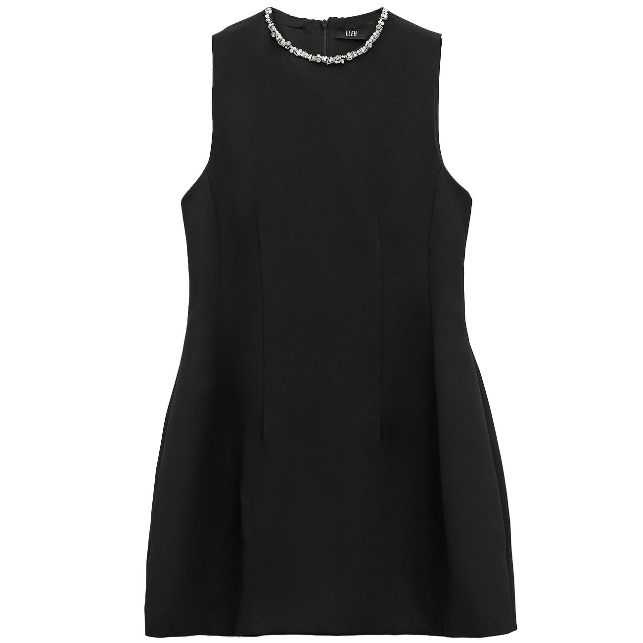 Il mini abito Eleh interpreta la moderna eleganza con una grazia raffinata e un fascino disinvolto. La linea ad A e il taglio smanicato definiscono una silhouette essenziale, impreziosita dal tessuto nero dalla caduta impeccabile. Il collo gioiello, ricamato con delicate perle luminose, aggiunge un tocco di splendore sofisticato che cattura lo sguardo. Pensato per occasioni speciali, evoca un equilibrio armonioso tra rigore sartoriale e glamour misurato. Un capo che riflette la femminilità contemporanea e l’estetica elegante di Eleh.