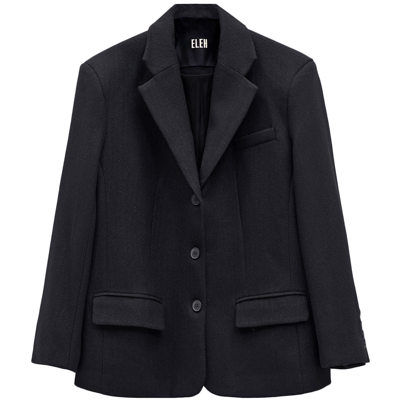 Il Blazer Lurex Eleh fonde con maestria la tradizione sartoriale con un tocco di glamour contemporaneo. Il tessuto nero, attraversato da delicate fibre Lurex, sprigiona un luminoso riflesso che valorizza ogni movimento. La silhouette rilassata, ma impeccabilmente strutturata, regala un’eleganza naturale, perfetta dal giorno alla sera. Ogni dettaglio racconta una raffinatezza misurata e consapevole. Un capo d’autore che incarna l’essenza sofisticata e distintiva di Eleh.