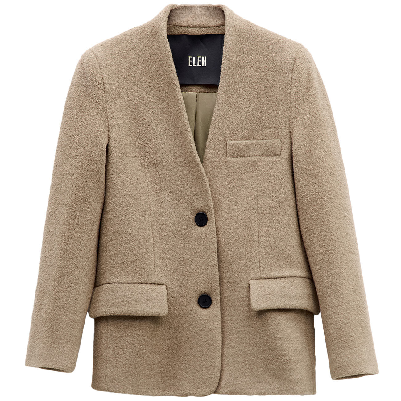 Il Blazer in Panno Eleh da Donna celebra la sartorialità minimalista con raffinata eleganza. Realizzato in morbido panno strutturato color cammello, il collo sciallato esalta la linea pulita e contemporanea del capo. La vestibilità curata e i bottoni a contrasto conferiscono un’eleganza disinvolta e versatile. Ogni dettaglio riflette la qualità ineccepibile e il gusto distintivo di Eleh. Un capo d’investimento che eleva con naturalezza ogni look, incarnando lusso e stile senza tempo.