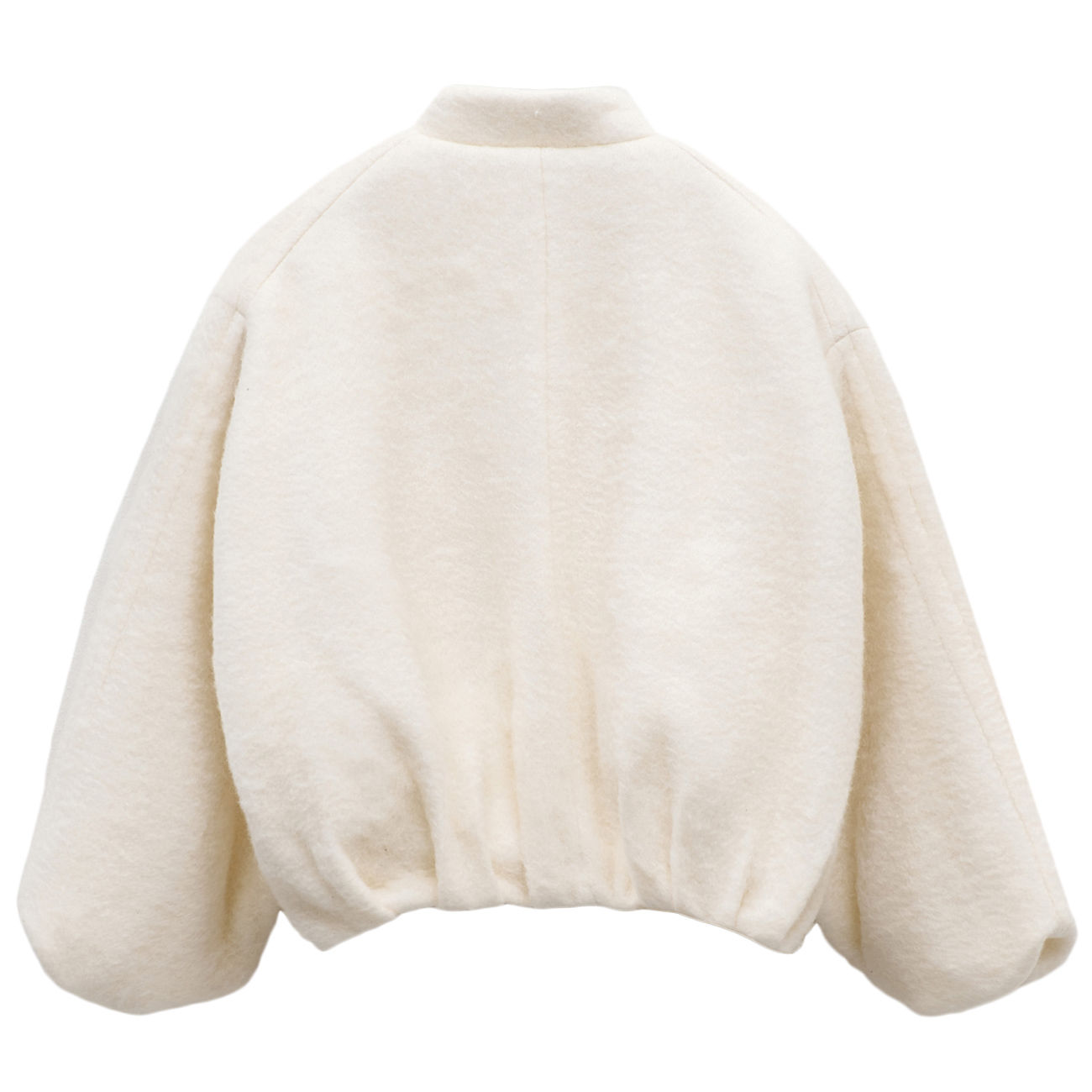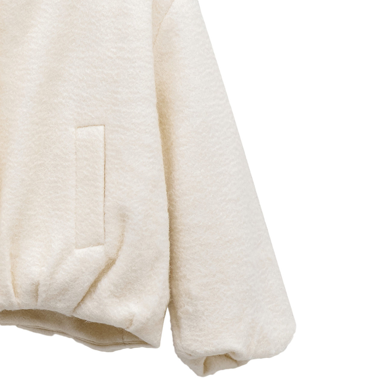 Il bomber in lana di Eleh reinventa il classico dello streetwear. La lana bouclé morbidissima in raffinata tonalità avorio dona luminosità e una texture avvolgente, mentre la silhouette oversize leggermente bombata è valorizzata dall’elastico sul fondo. L’assenza di collo e la chiusura minimalista conferiscono al capo un’eleganza pulita e contemporanea. Ogni dettaglio esprime lusso discreto e sofisticato, trasformando il bomber in un vero statement. Perfetto per arricchire il guardaroba femminile con stile moderno e raffinato.