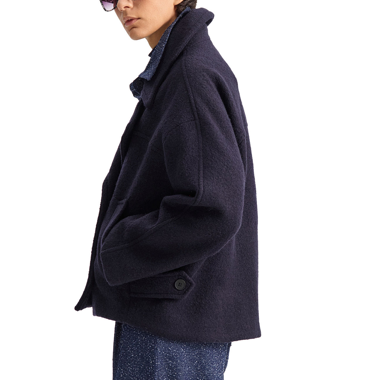 Il Cappotto Doppio Petto in Lana di Eleh è l’emblema del chic invernale reinterpretato in chiave moderna. Realizzato in lana pregiata, nella profonda tonalità navy, avvolge con morbidezza e calore superiori. Il taglio boxy e corto, valorizzato dal doppio petto raffinato, conferisce una silhouette contemporanea e disinvolta. Ogni dettaglio riflette l’eccellenza sartoriale firmata Eleh. Un capo d’investimento versatile, perfetto per accompagnare con eleganza ogni momento della giornata.