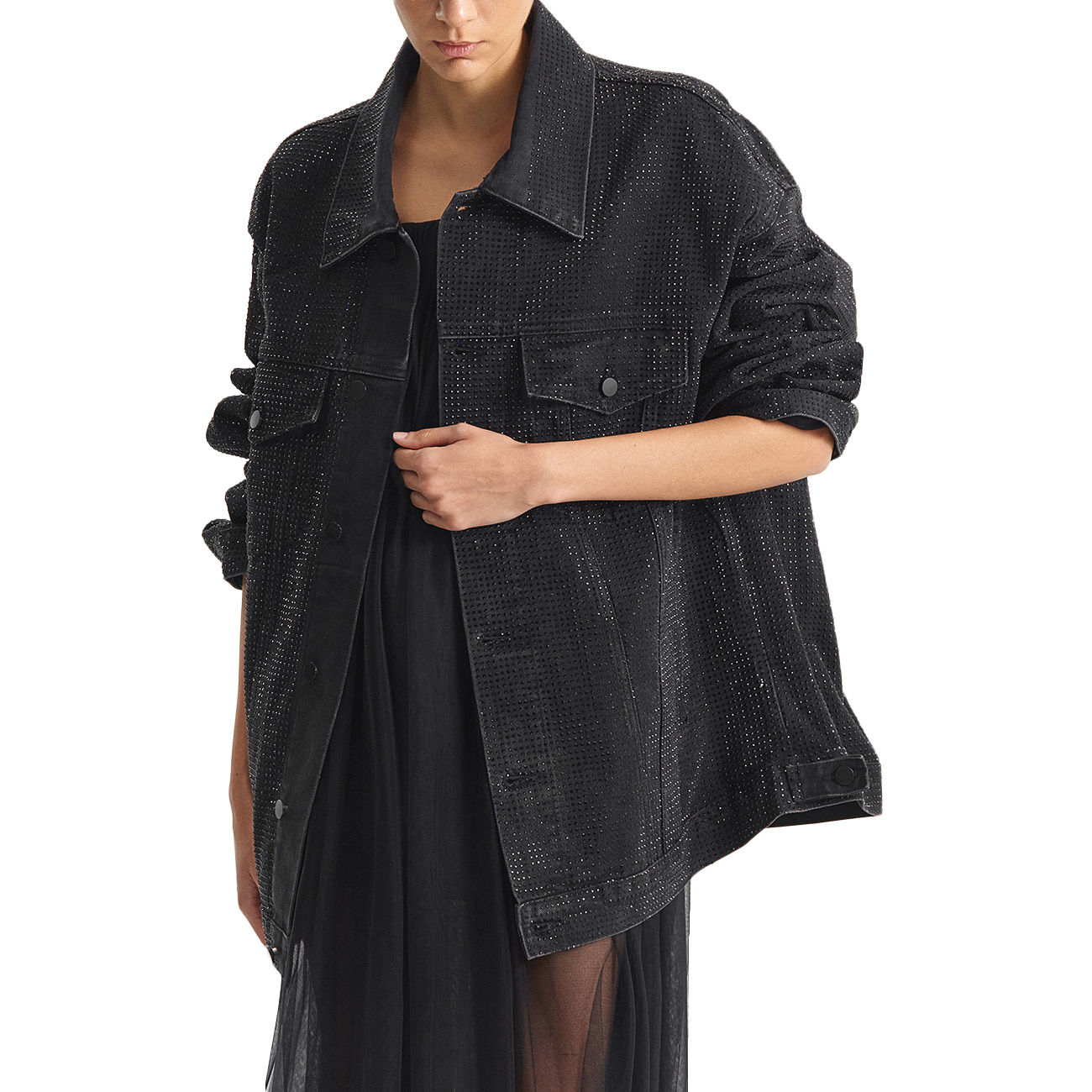 La Giacca di Eleh con borchie reinventa il classico in chiave glam-rock, per un look deciso e contemporaneo. Realizzata in denim nero intenso, è arricchita da micro-borchie tono su tono che catturano la luce con un delicato effetto scintillante. La silhouette oversize e rilassata conferisce un’attitude moderna, perfetta per bilanciare outfit più eleganti. Ogni dettaglio riflette l’audacia e il lusso distintivo del marchio Eleh. Un capo statement che incarna stile all’avanguardia e personalità sofisticata.
