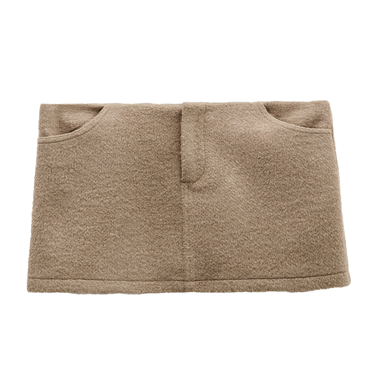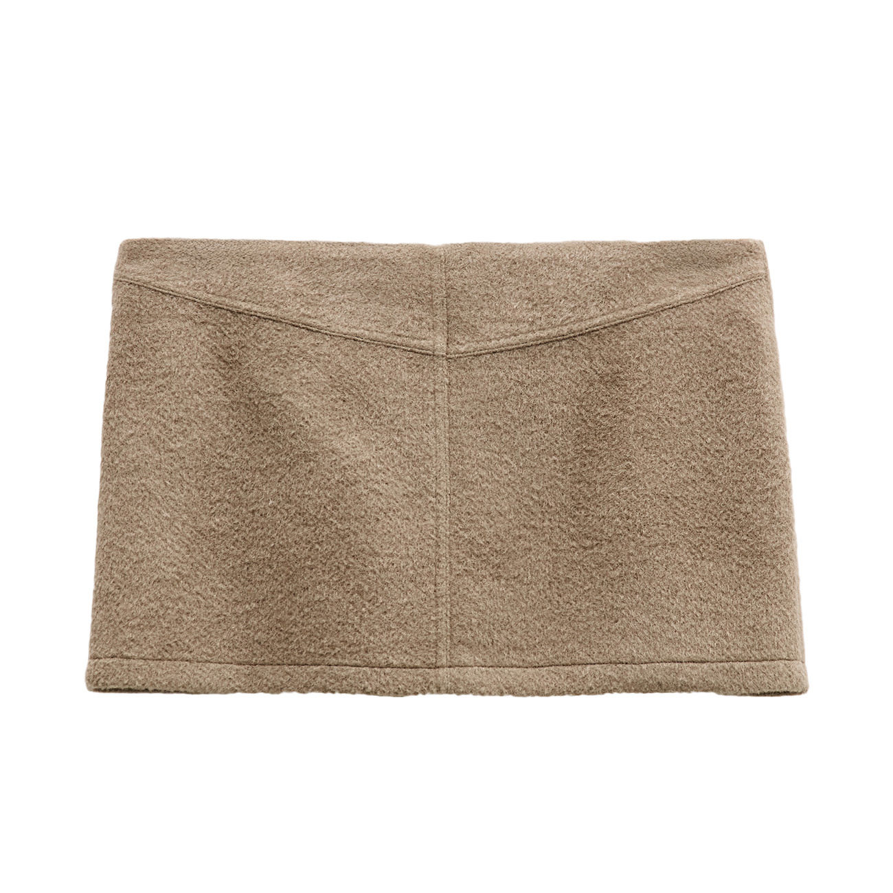 La Mini Gonna Panno di Eleh incarna un lusso tattile e una silhouette audace. Realizzata in un pregiato panno color cammello, la sua consistenza morbida e strutturata assicura un comfort sublime. Il taglio mini essenziale, con tasche a filo discrete, offre una linea pulita che valorizza la figura. È il capo perfetto per un ensemble sofisticato ma grintoso, un pezzo chiave che riflette l'estetica elevata e la qualità ineccepibile del marchio Eleh.