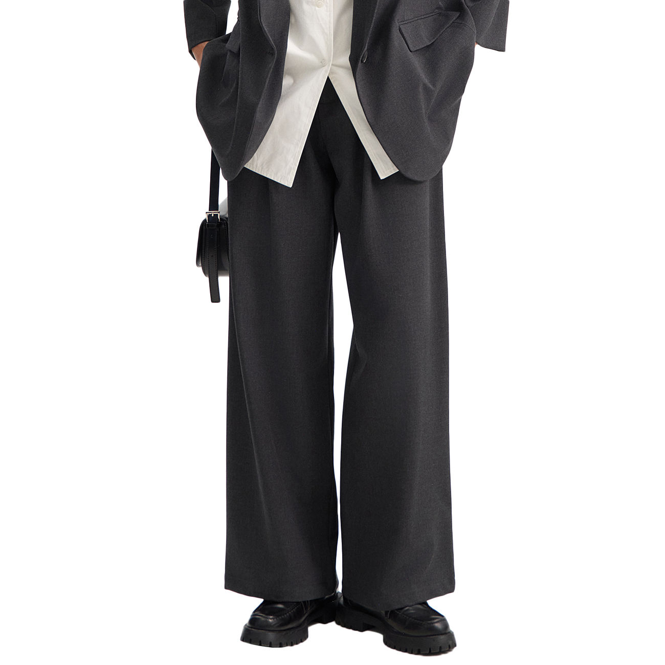 I pantaloni a palazzo Eleh rappresentano la quintessenza dell’eleganza sartoriale, unendo linee impeccabili e fascino senza tempo. Il fit ampio e le gambe fluenti scolpiscono una silhouette raffinata, valorizzata dal tessuto grigio scuro dalla texture strutturata. Le pinces frontali richiamano la tradizione sartoriale, donando volume controllato e un movimento armonioso. Pensati per offrire comfort e ricercatezza in egual misura, si adattano con naturalezza a look professionali o più disinvolti. Sinonimo di stile essenziale e moderno, incarnano l’equilibrio perfetto tra rigore e femminilità firmato Eleh.