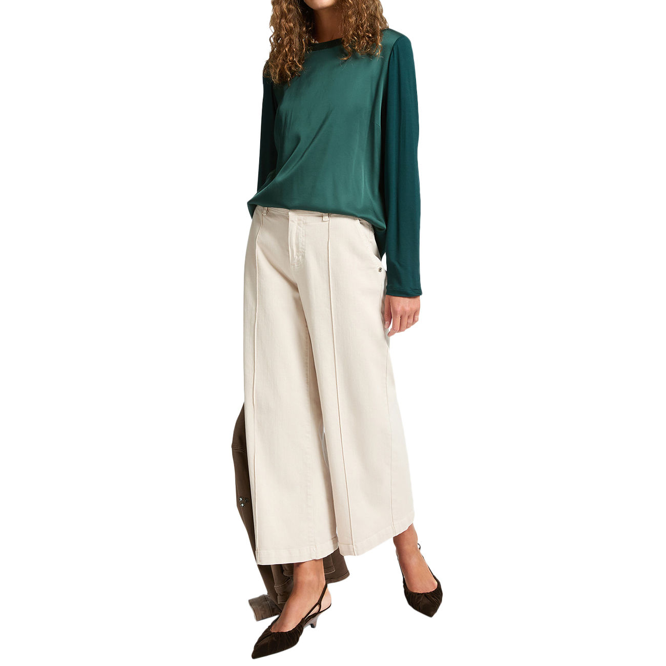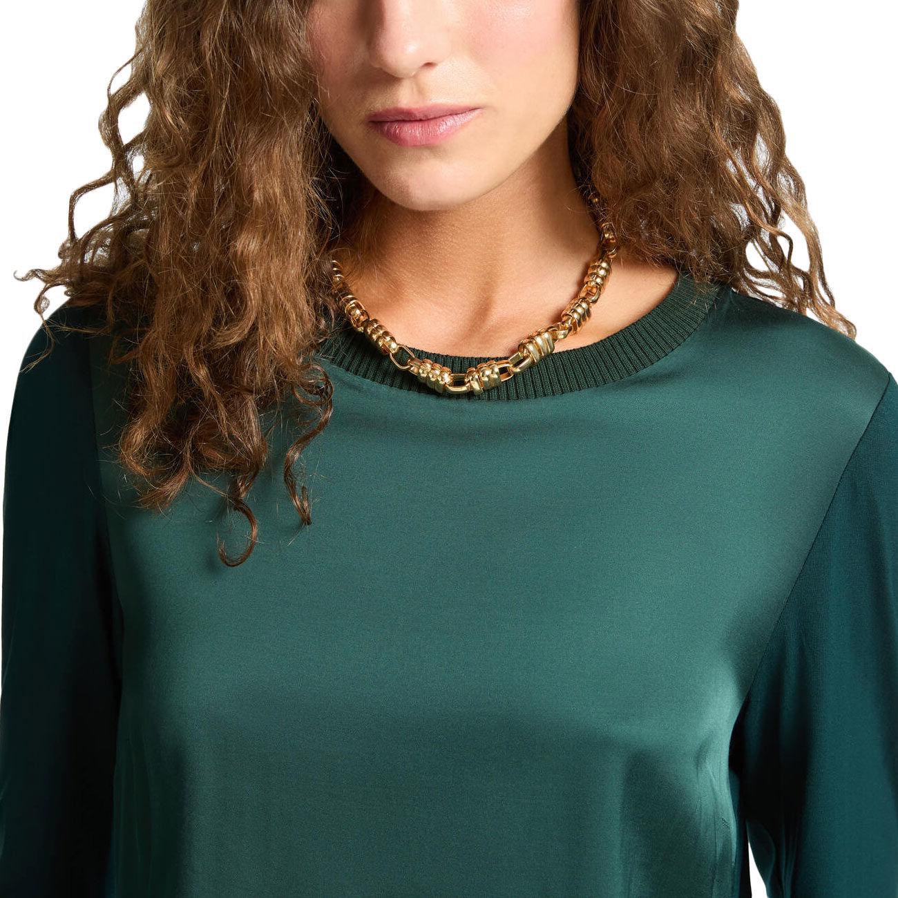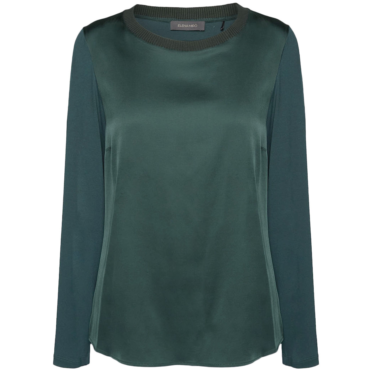Scopri l’eleganza senza tempo della T-shirt di Elena Mirò, dove il davanti in raso lucido incontra maniche e retro in morbido jersey, creando un raffinato contrasto di texture. Il modello basic, reinterpretato con cura sartoriale, esalta la vestibilità e dona un’allure sofisticata a ogni look. Lo scollo tondo, impreziosito da un delicato bordo elasticizzato, assicura comfort e stile in ogni occasione. Perfetta da indossare da sola o come sotto giacca, questa T-shirt si adatta con naturalezza a ogni stagione. La combinazione di materiali e design la rende un capo versatile, ideale per chi cerca raffinatezza senza compromessi.