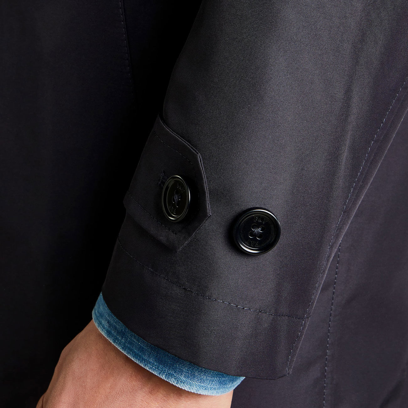 Il Morning Coat è un impermeabile iconico con una doppia costruzione frontale per un`eleganza casual e senza tempo. Questa versione sfoderata è realizzata in popeline tecnico con finissaggio idrorepellente. Presenta tasche a filetto fasciate e abbottonate e polsini con chiusura a zip e bottone. Una tasca interna completa il capo.