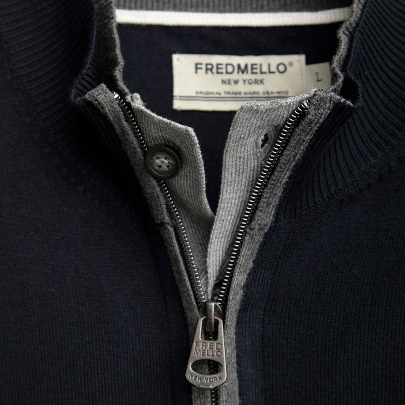 Un capo versatile e dal fascino contemporaneo, che unisce comfort e dettagli di stile in un perfetto equilibrio. Realizzata in misto viscosa a finezza 12, questa maglia full zip a collo alto Fred Mello si distingue per la cura sartoriale e la qualità delle finiture. La zip bidirezionale con tiretto in metallo logato e il collo doppio con paramontura in contrasto conferiscono personalità e carattere al design, mentre i bottoni effetto corno all’interno aggiungono un tocco distintivo e raffinato. I bordi in costina e i polsi con righino in contrasto completano il look con eleganza discreta, rendendo questo capo ideale per interpretare con stile i momenti del quotidiano.