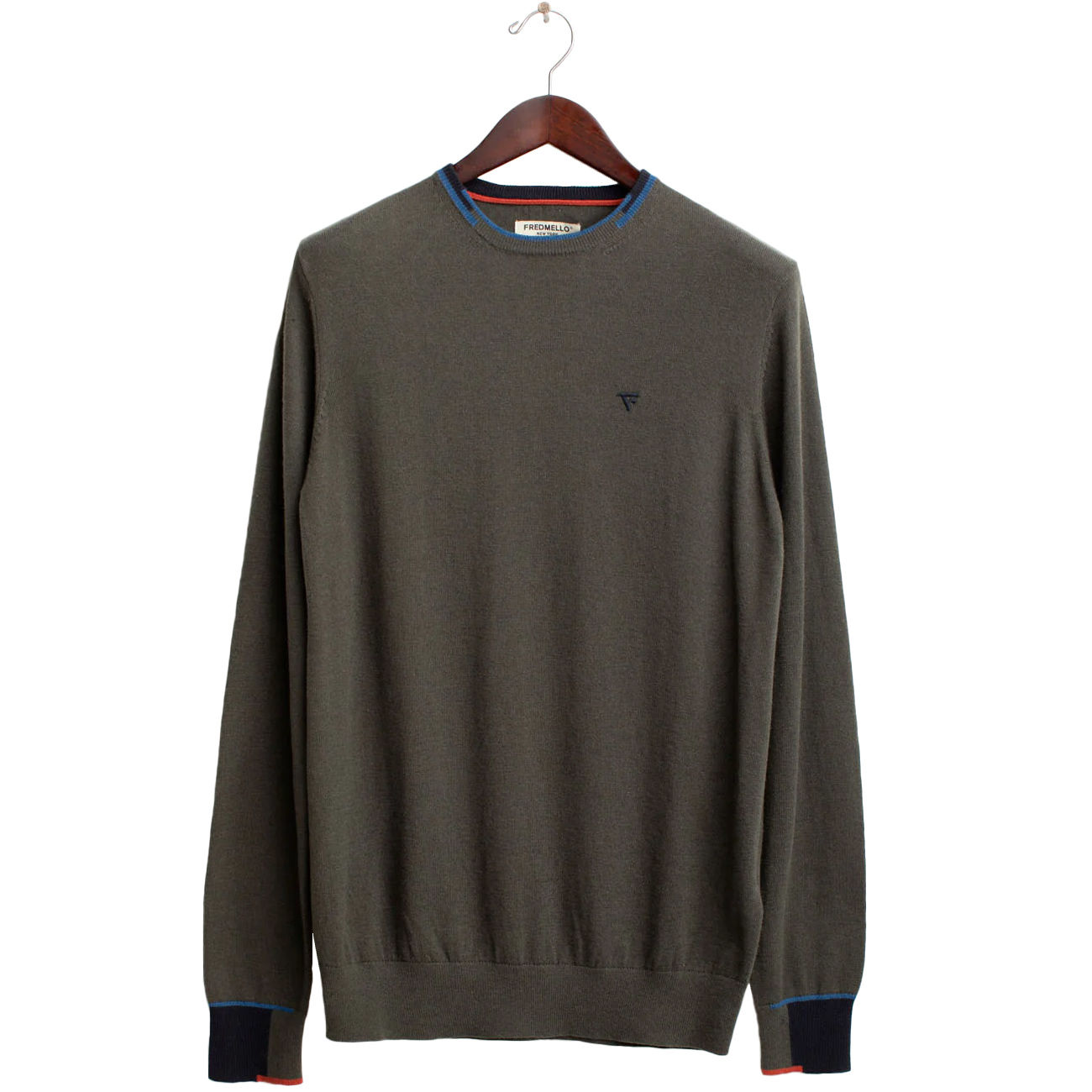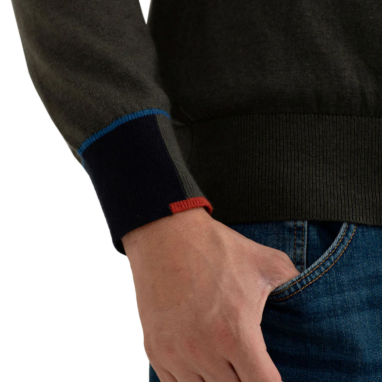 Il maglione girocollo Fred Mello in una sofisticata tonalità di verde ridefinisce il classico sportswear con dettagli d'impatto. Le patch sui gomiti e i polsini risvoltati in blu navy creano un raffinato contrasto cromatico, mentre i profili sottili in blu elettrico e arancione aggiungono un tocco di energia inaspettata. Realizzato per l'uomo che apprezza una vestibilità comoda ma curata, questo capo è l'emblema di un lusso discreto e di uno stile ineccepibile per l'abbigliamento casual.