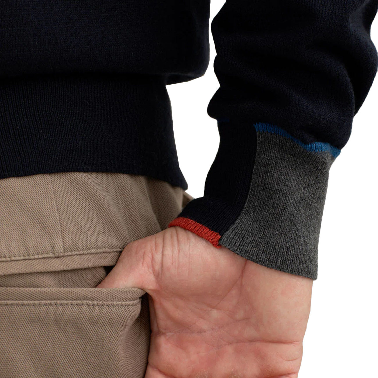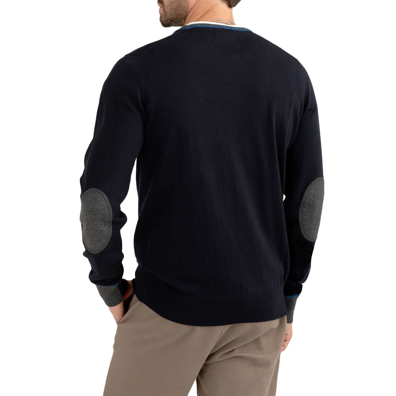 Questo maglione girocollo Fred Mello, in un sobrio e versatile blu navy, incarna l'essenza dell'eleganza sportiva e raffinata. I dettagli a contrasto grigio melange sui polsini e le patch sui gomiti aggiungono un tocco distintivo e sofisticato, perfetto per l'uomo che predilige uno stile curato ma disinvolto. La leggera rifinitura colorata al collo completa il capo con una nota di brio, rendendolo l'alleato ideale per un guardaroba che non rinuncia alla qualità e al design contemporaneo.