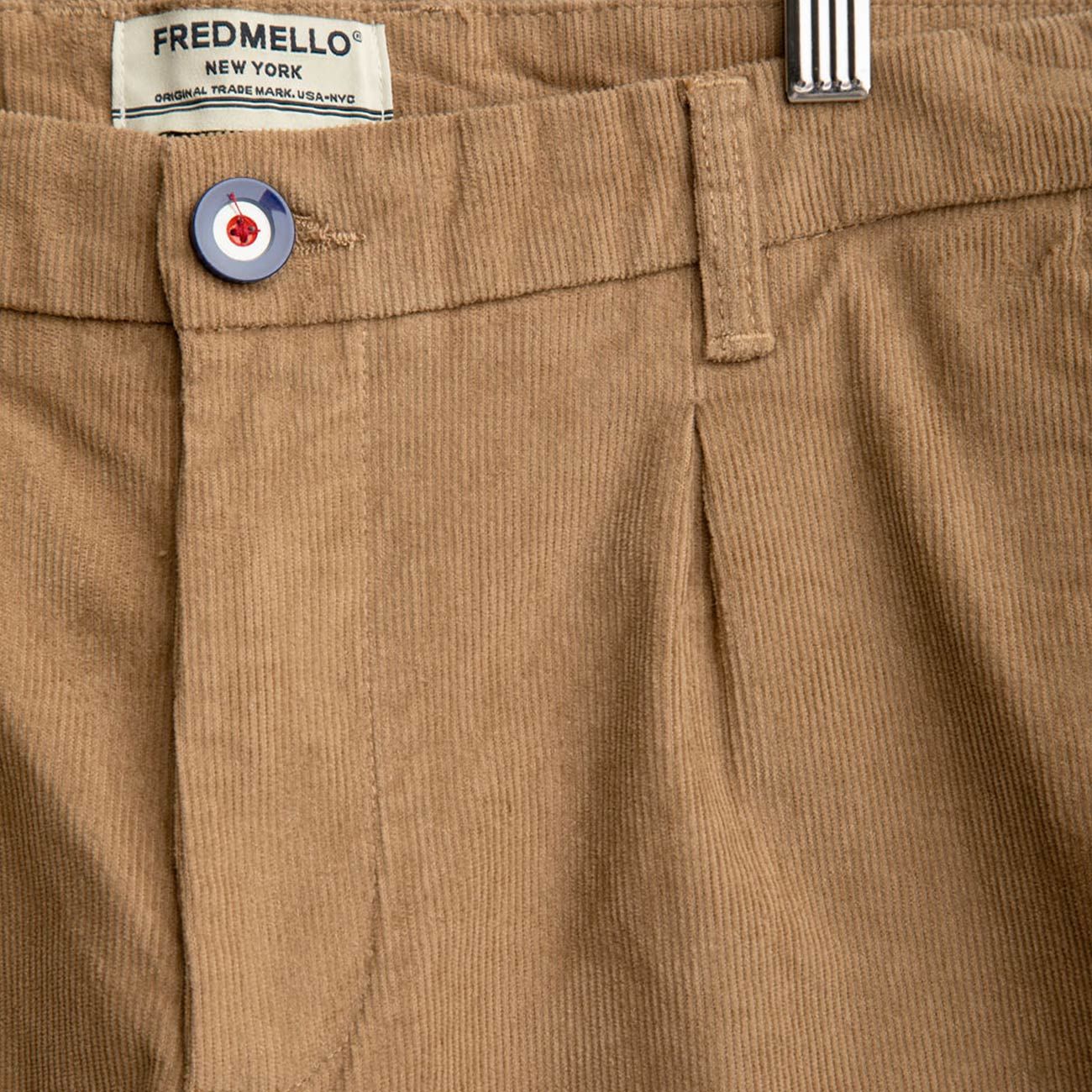 Il pantalone Fred Mello in velluto a coste sottili celebra una sofisticatezza disinvolta, perfetta per chi desidera un'eleganza quotidiana senza rinunciare al comfort. La tonalità cammello, calda e versatile, lo rende un capo essenziale da abbinare con facilità in ogni occasione. La vestibilità moderna, arricchita da una piega delicata sul davanti, dona una linea impeccabile e armoniosa. Il bottone con logo, tono su tono, riflette la cura sartoriale e l’attenzione ai dettagli del marchio. Un capo che unisce stile rilassato e materiali ricercati, pensato per l’uomo dal gusto raffinato.
