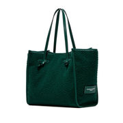 Shopping bag realizzata in tessuto intrecciato con profili in pelle e manici in pelle. Chiusura con calamita.