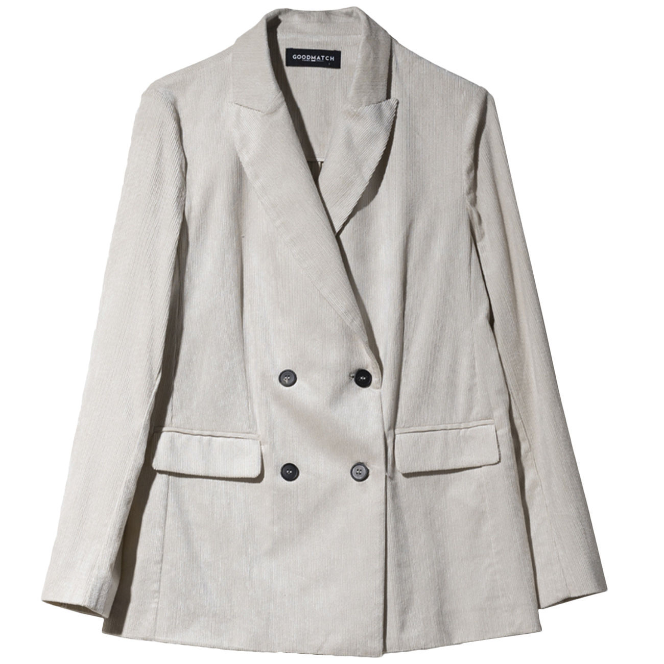 Raffinato e contemporaneo, questo blazer doppiopetto fonde la precisione sartoriale con l’eleganza rilassata del casualwear. Realizzato in velluto a costine sottili nella delicata tonalità avorio, conquista per la sua texture morbida e luminosa. Il taglio leggermente allungato e la chiusura a due bottoni definiscono una silhouette moderna e impeccabile. Le tasche a patta e i dettagli strutturati ne esaltano l’allure classica e versatile.