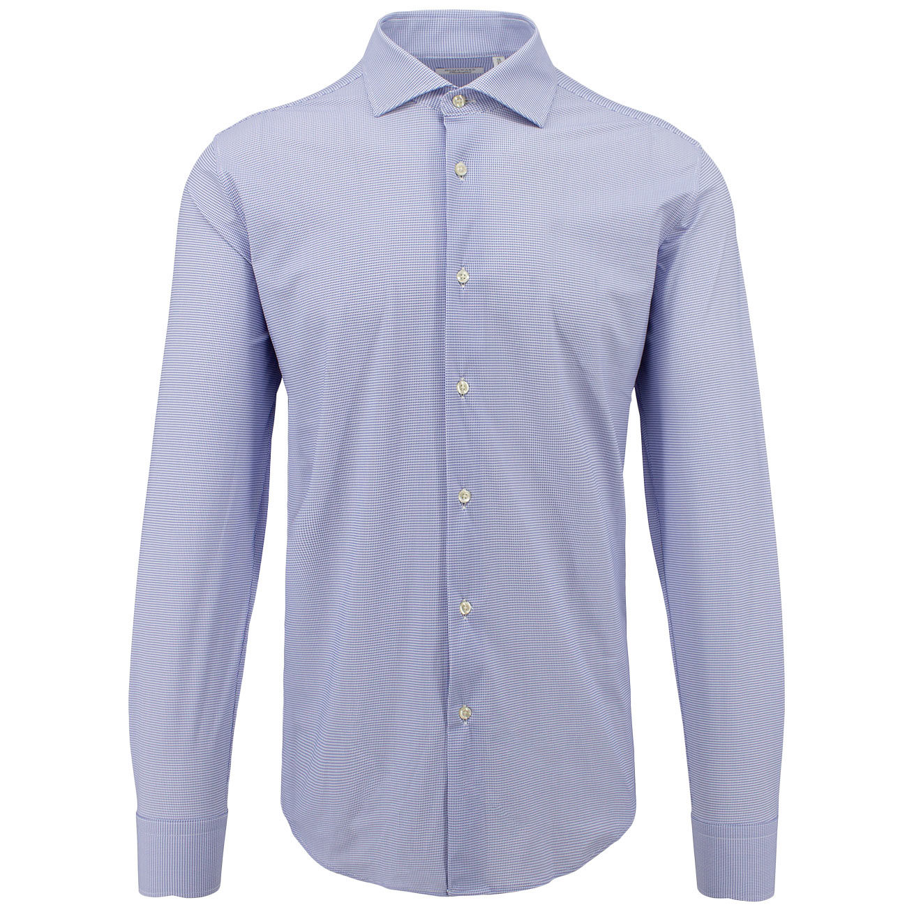 Perfetta fusione tra performance e sartorialità, la Camicia di Homeward eleva il guardaroba formale con un tocco di modernità. Il tessuto tecnico in nylon offre una leggerezza impalpabile e una caduta impeccabile, ideale per l'uomo dinamico che non accetta compromessi sull'eleganza. La micro-fantasia su base azzurra dona profondità e un dinamismo discreto, mentre il colletto classico assicura un'allure impeccabile. Questo capo è la quintessenza del dress code contemporaneo.