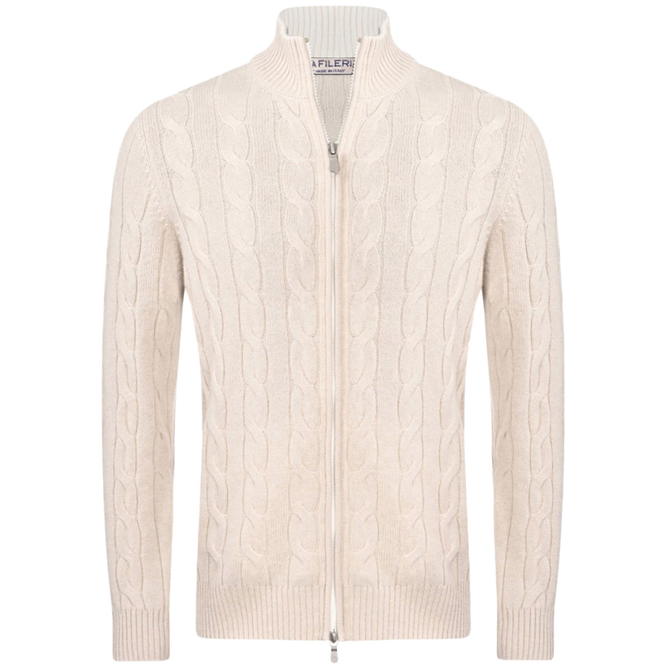 Il full zip firmato La Fileria rappresenta l’eccellenza della maglieria maschile, fondendo tradizione artigianale e funzionalità contemporanea. Realizzato interamente in lana purissima, avvolge con un calore confortevole e una morbidezza impareggiabile. La lavorazione a treccia cable knit su tutta la superficie conferisce una texture ricca e un’eleganza heritage sofisticata. La pratica cerniera metallica ne aumenta la versatilità, permettendo di indossarlo come capo leggero o in stratificazione. Il raffinato tono ecrù aggiunge luminosità e sobrietà al look. Un vero statement di stile, pensato per chi ama l’eleganza senza tempo e la qualità sartoriale.