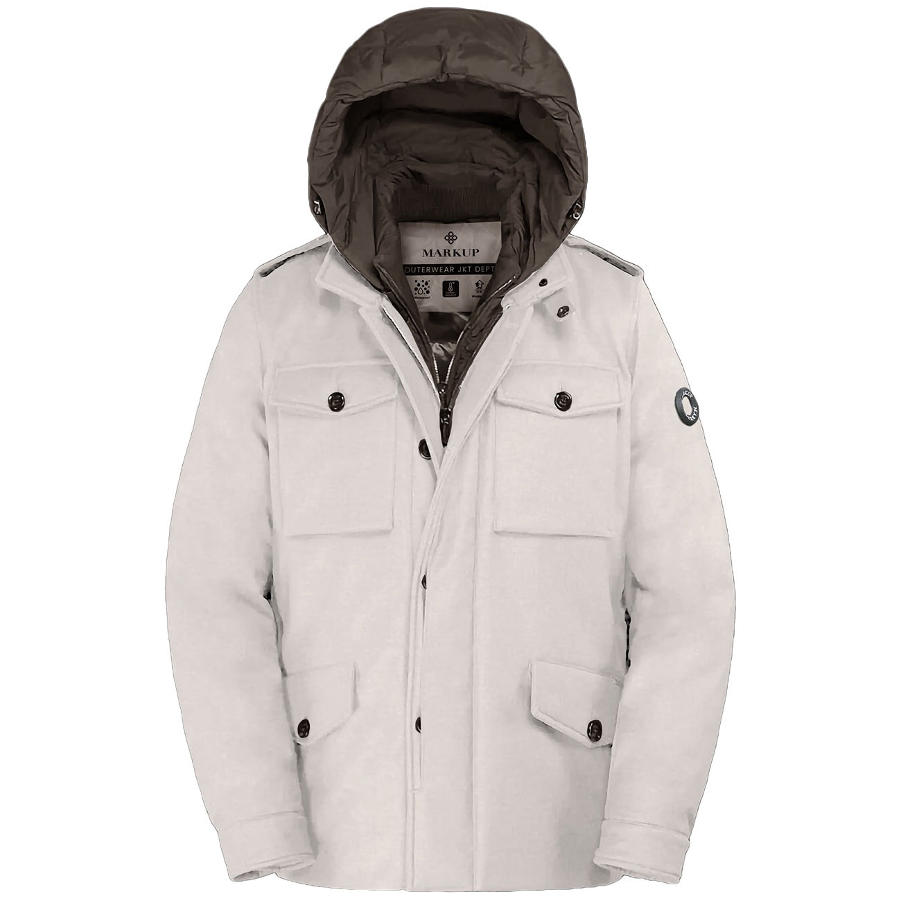 Esalta il tuo stile con la Field Jacket di Markup, un capo che unisce con maestria funzionalità e raffinatezza sartoriale. Presenta una silhouette iconica impreziosita da quattro tasche a soffietto. La pettorina interna imbottita e rimovibile con cappuccio assicura comfort e protezione nelle stagioni più fredde. Ideale per il clima autunnale e invernale, interpreta alla perfezione il concetto di lusso discreto e contemporaneo.
