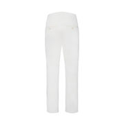Pantalone con piega stirata sulla gamba e dalla linea leggermente svasata al fondo, la chiusura è con lampo coperta e piccolo gancio.